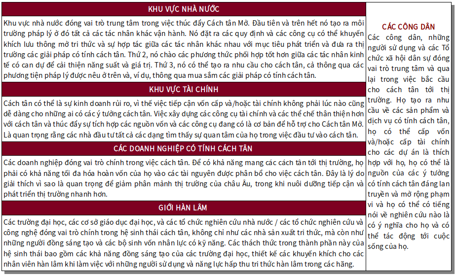 Hình 4. Vai trò của các tác nhân trong hệ sinh thái Cách tân Mở của EU/EC