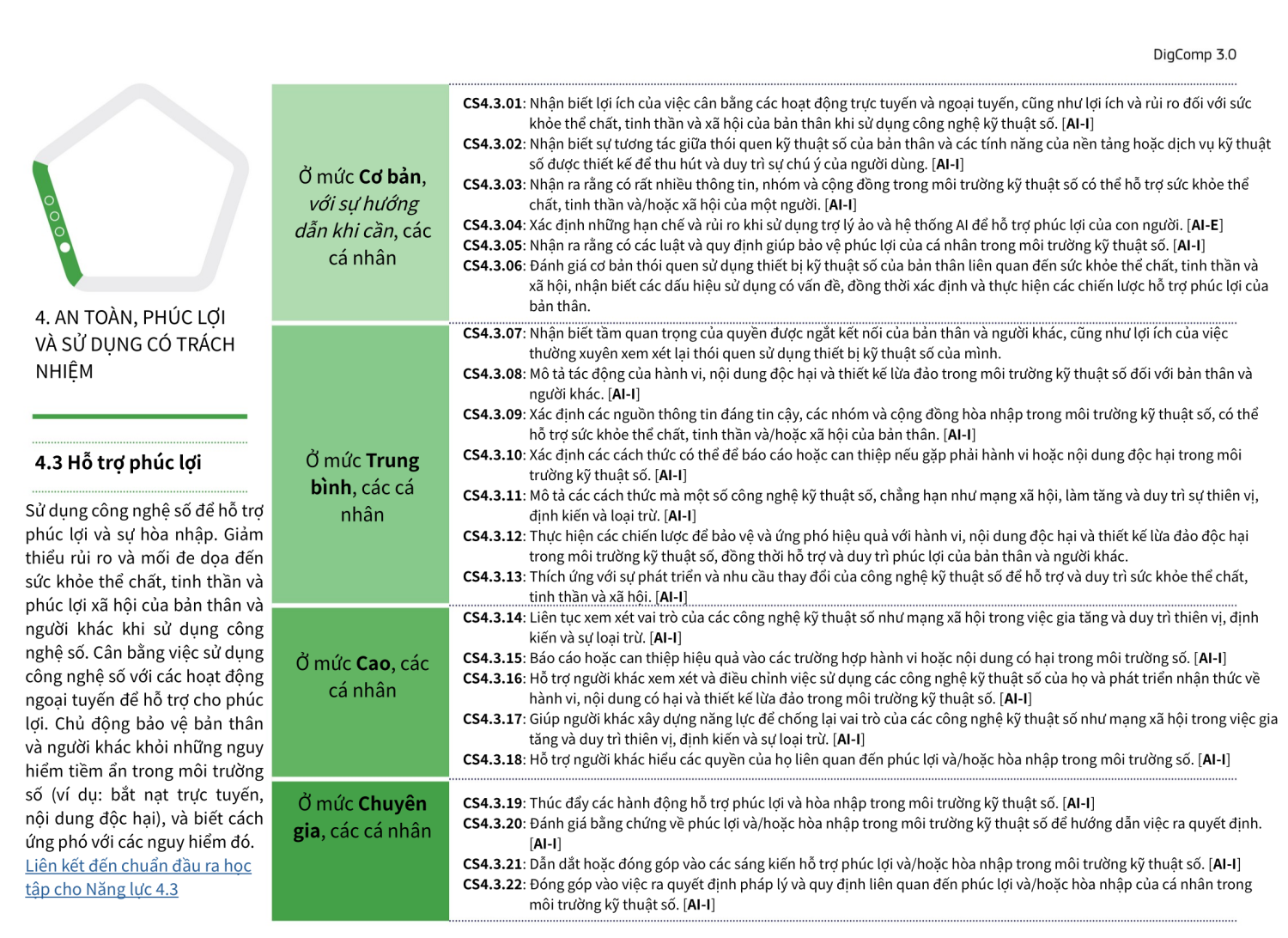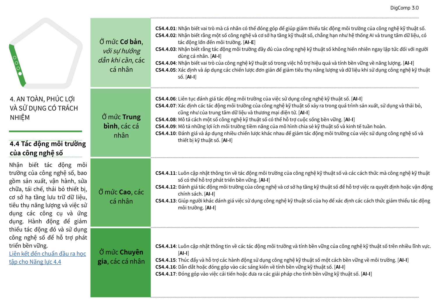 Lĩnh vực năng lực 4. An toàn, phúc lợi và sử dụng có trách nhiệm