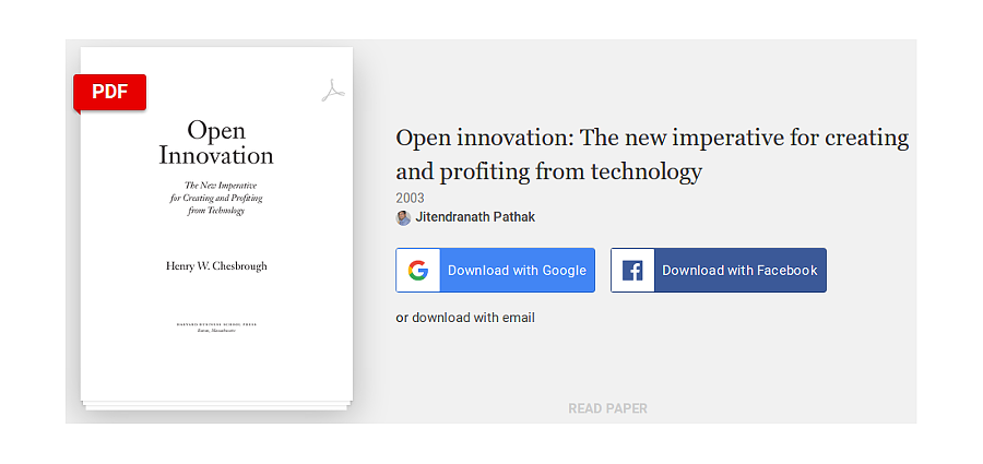 Có thể tự do tải nhanh về cuốn sách: ‘Cách tân Mở - Sự cấp bách mới để Tạo ra và Hưởng lợi từ Công nghệ’ (Open Innovation – The new imperative for Creating and Profiting from Technology)’ của Henry Chesbrough, xuất bản năm 2003 với 227 trang tại địa chỉ: